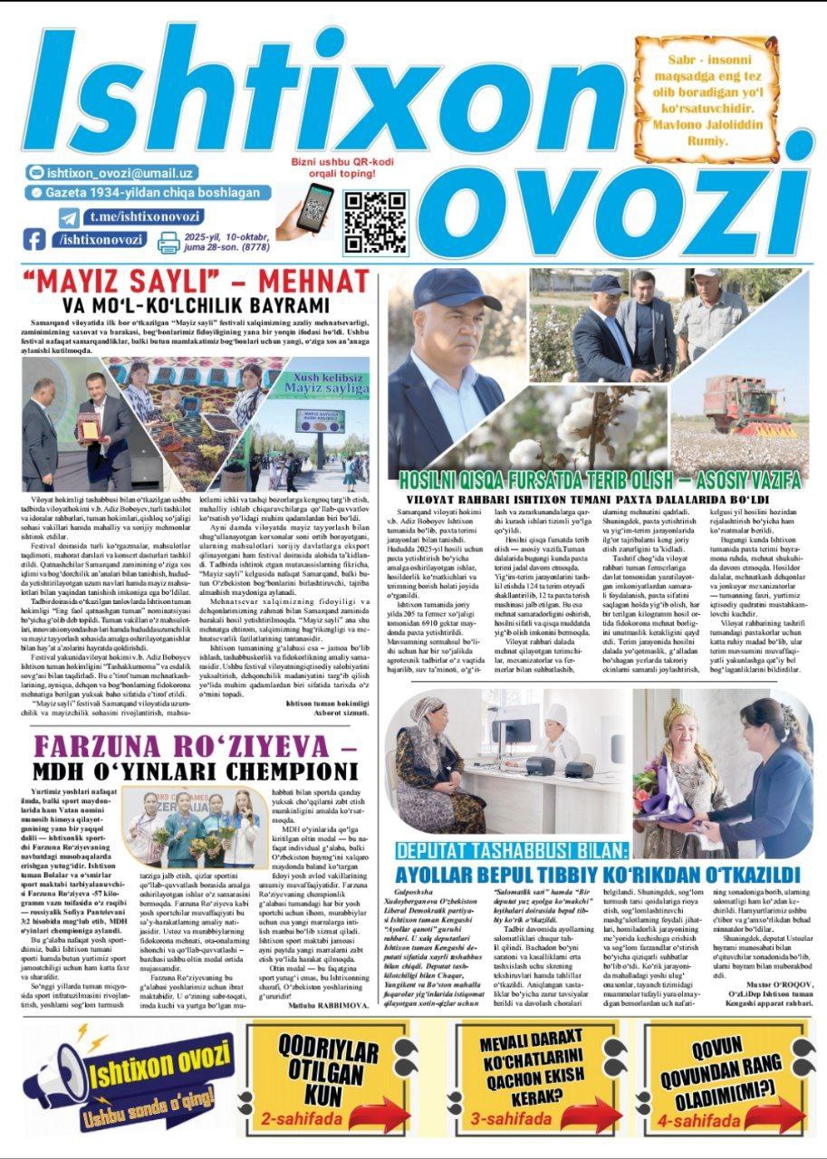 Ishtixon tumani hokimi Fazliddin Ruziyev tuman yoshlari bil…